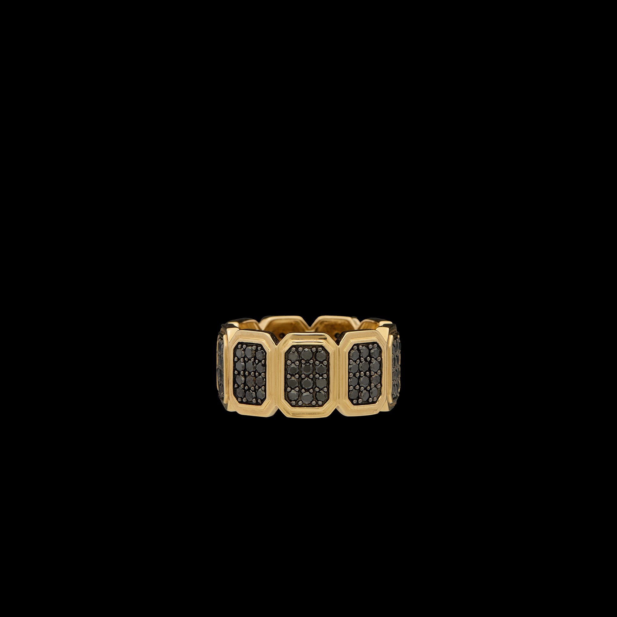 Ray of Light - Gold Quatrum Wide Band - Black Diamond Pave